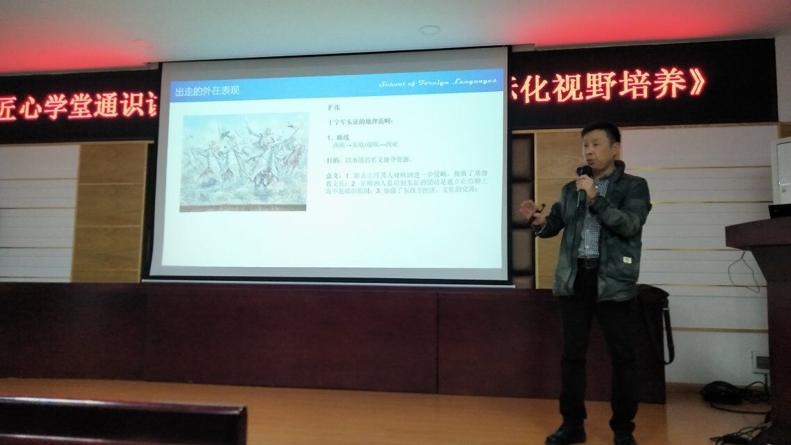 2018年10月24日晚,汽机学院于工科一号楼B-417举办匠心学堂“通识讲坛”,特邀长沙理工大学外国语学院黄坚教授作《“出走”与国际化视野培养》讲座。