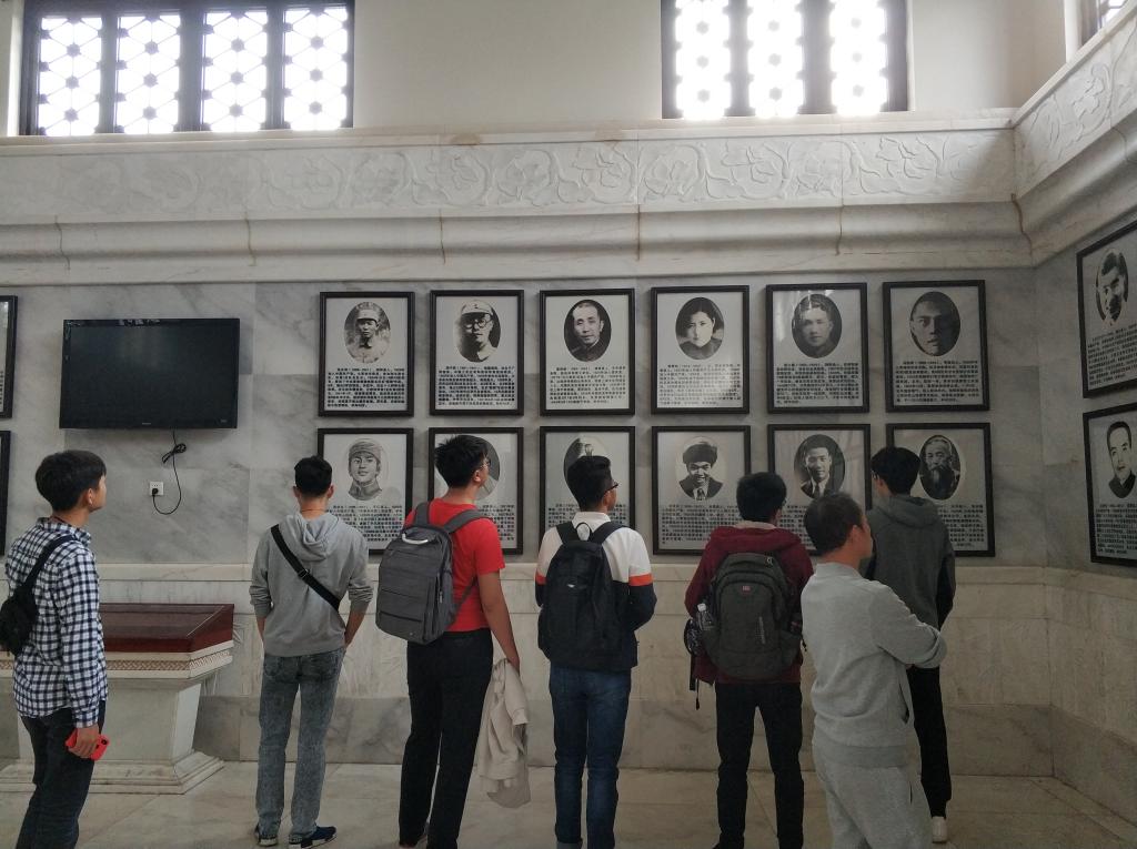 首先,学员们来到了烈士纪念馆。他们神情严肃而庄重,从悬挂在大堂墙上的牌匾中了解了众多革命先烈的感人事迹。“为国牺牲,永垂不朽”、“生的伟大,死的光荣”,毛主席的题词高挂在大堂两侧,时刻提醒人们不忘这些革命先烈为共产主义事业所做出的贡献。在两个侧厅中,罗列了谭嗣同、何叔衡、黄兴、杨开慧等近代以来数十位三湘革命先烈的先进事迹,他们为了国家的命运与人民的解放进行了不屈不挠、艰苦卓绝的英勇斗争,直至以身殉国。其中一位名叫李广的烈士牺牲时年仅14岁,她的事迹在场的学员们感动泪目。