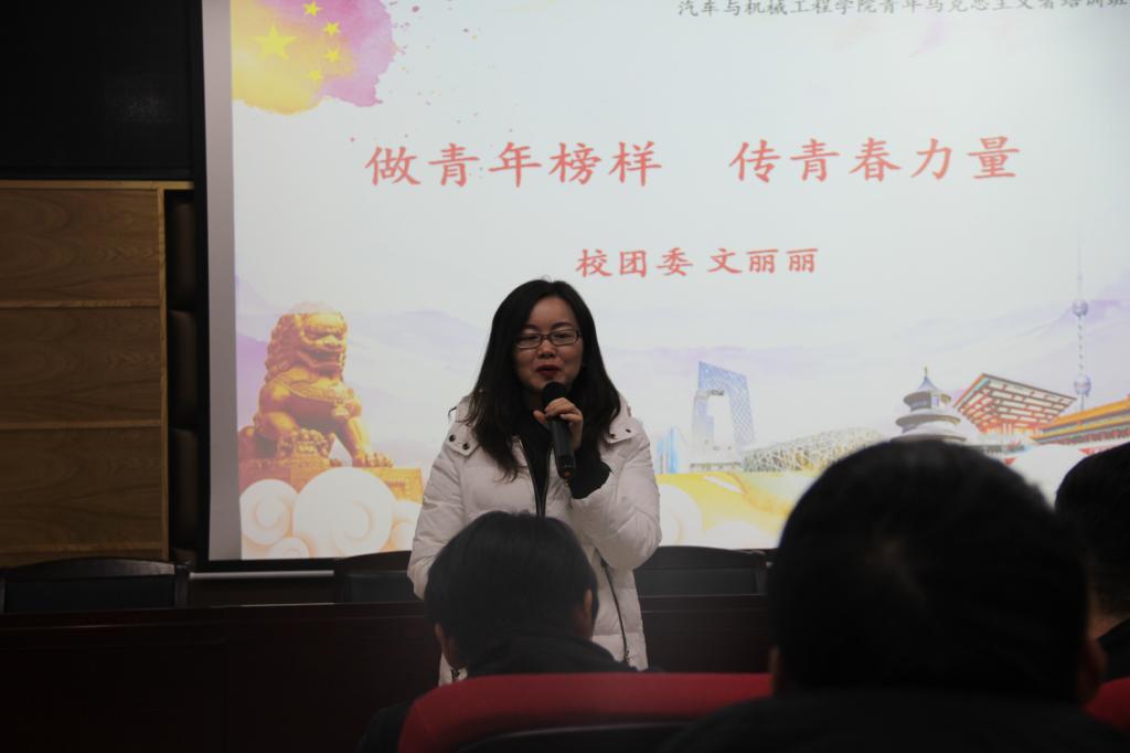 2018年12月13日晚6点30分,我院于工科一号楼B417开展第二次青马班理论课,本次课程由校团委副书记文丽丽老师为第八期青马班学员讲解“做青年榜样,传青春力量”。