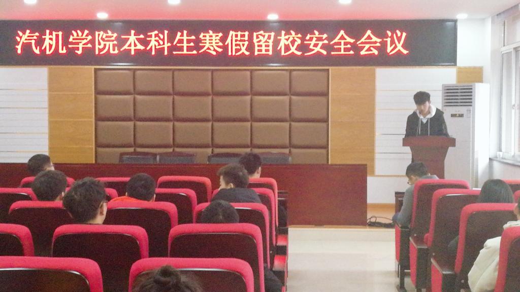 2019年1月14日12点30分,汽机学院在工一B417召开本科生2019年寒假留校安全教育大会,学院党委副书记靳攀科、各年级辅导员出席。