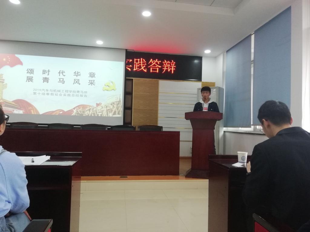 2019年3月17日下午2点,汽机学院第八期青年马克思主义者培训班在云塘校区工科一号楼B417举行了社会实践总结答辩,青马班全体学员参与了此次总结答辩。本次答辩由18级学员肖淞珂主持,汽机学院团委副书记王俊杰、学生会主席赵杰、能动学院团委副书记刘起俊出席本次答辩并担任评委。