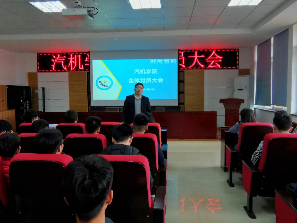 3月26日下午14:30,汽机学院于工科一楼B417召开本学期第一次全体党员大会。靳攀科书记、周路路老师和全体学生党员参加会议。