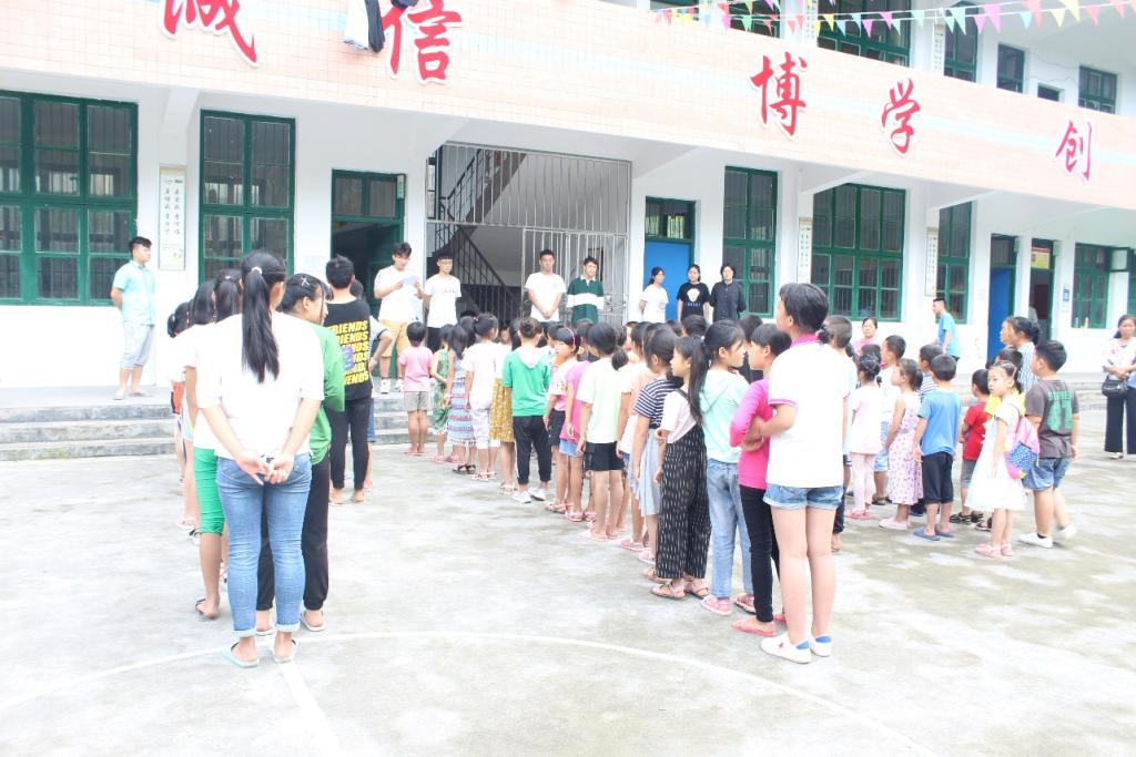 七月十五日早,芭蕉坪小学的全体师生,集合在学校操场,举行了本次暑期支教的开学典礼。学生们活泼可爱,老师们认真负责。