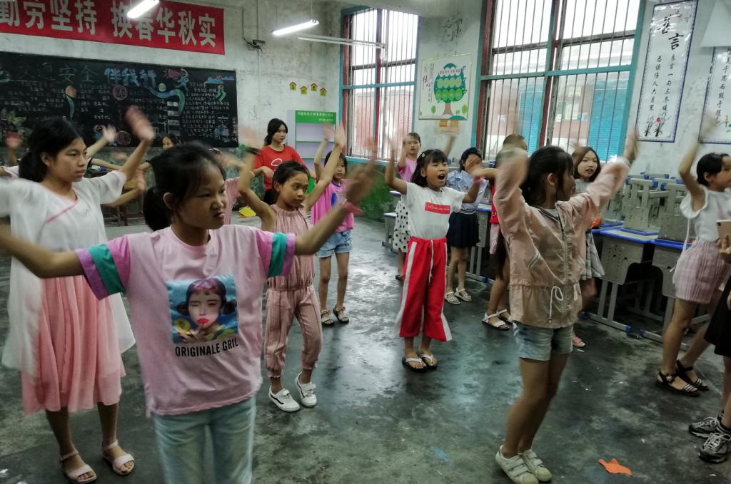 2019年7月23日,支教第九天。今天的天气依旧诡异莫测,刚刚还是艳阳高照,转眼便下起了瓢泼大雨。无奈之下,我们只好把一间空教室清理出来用作舞蹈室。同学们聚集在教室里,跟着舞蹈阳老师一拍一拍地学习舞蹈。