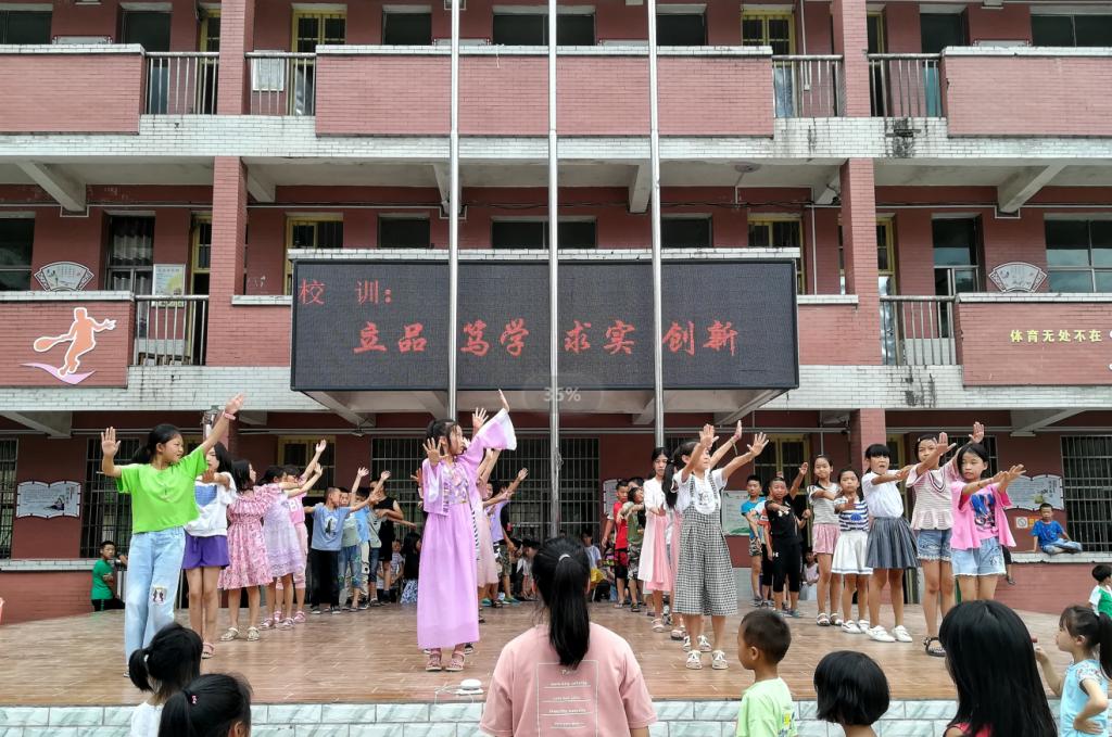 诺大的操场上,很是热闹。老师们在不停地指挥着,忙这忙那;孩子们在认真地唱着跳着,满脸兴奋。朗诵、武术、舞蹈《小跳蛙》、《兔子舞》、《98k》、《红山果》、学生合唱《再见》、《昨日青空》、老师合唱《遇见》、单人唱《咖喱咖喱》、《借过》、手势舞《厚德载物》......节目一个接着一个,一切都在安排下有条不紊的进行着。