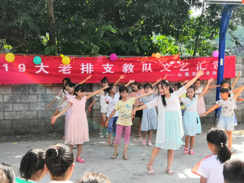2019年7月29日,大老排支教点举行了精彩纷呈的文艺汇演。在支教老师的精心指导和学生们的尽心演出下,文艺汇演取得了圆满成功。