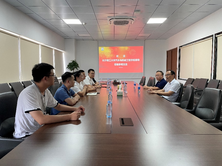 李明经理依次带领大家参观了集团展厅和新能源汽车有限公司,了解集团的历史沿革、产业布局、主要业务和技术实力等。周小杰副书记介绍了长沙理工大学和汽机学院的发展历程,展示了学院的专业特色、人才培养、科技成果、学生就业等情况。唐宏宾副院长对与会校友表示了亲切慰问,并关心了解校友们在集团的发展近况。人力资源部门的相关同志介绍了集团往年在长沙地区的招聘情况和今年秋招的计划。随后,与会双方围绕产学研合作、就业招聘、职业发展等方面进行了深入交谈,会场氛围热烈。