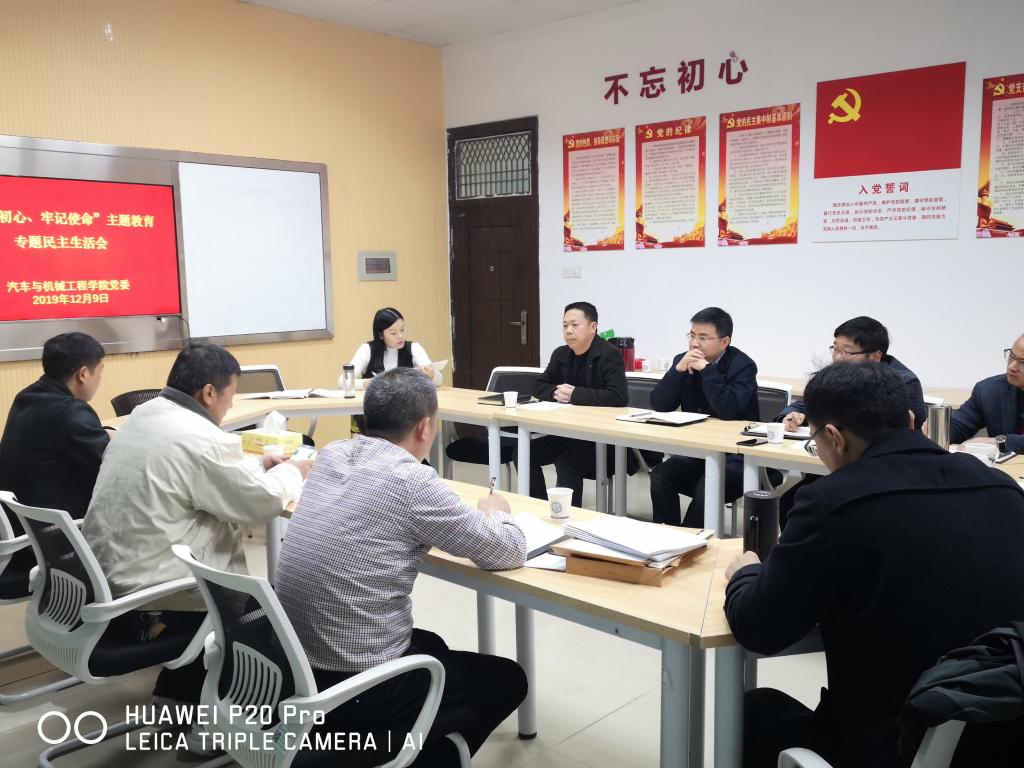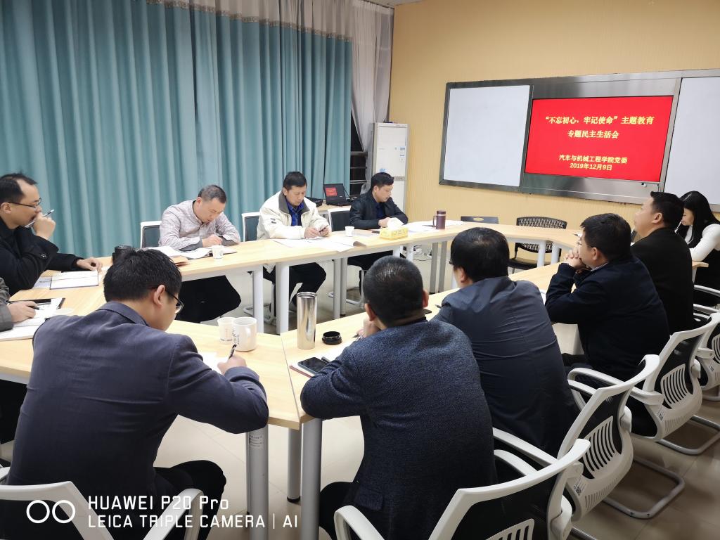 12月9日晚上,汽车与机械工程学院党委在工一B414会议室召开了“不忘初心、牢记使命”主题教育专题民主生活会。会议围绕主题教育总要求,进行自我检视和对照剖析,深入开展批评和自我批评。专题民主生活会由学院党委书记邱国良主持,学校主题教育督导组第三组组长李争流全程参加并作指导。