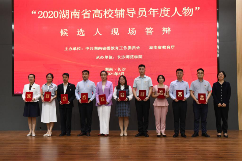 2020湖南省高校辅导员年度人物评选由全省各高校推荐,省委教育工委、省教育厅组织专家评审,遴选出30名辅导员入围现场答辩环节,通过现场展示和答辩评选出10名“2020湖南省高校辅导员年度人物”。