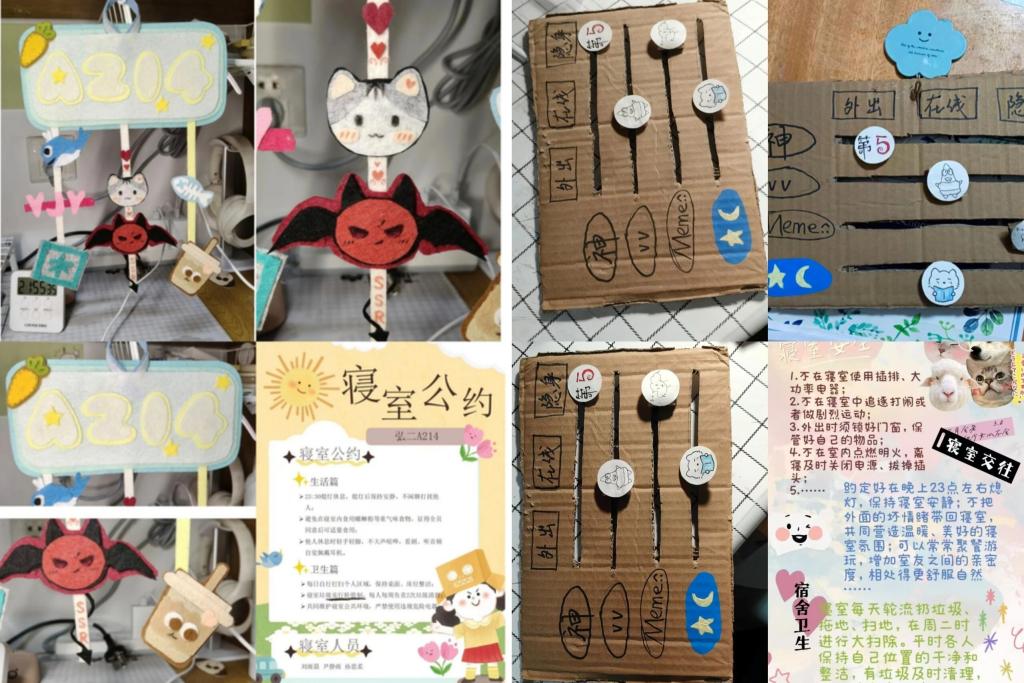 经综合评审,本次活动共评选出一等奖3个、二等奖6个、三等奖9个,其中弘一B422、弘四A604、弘四A630表现突出,分获各板块一等奖。通过“寝室文化节”系列活动的开展,同学们不仅在共同打造温馨小家过程中增强了凝聚力,更在协作与分享中深化了彼此理解,为学院文化建设注入了持续的生活温度与人文活力。