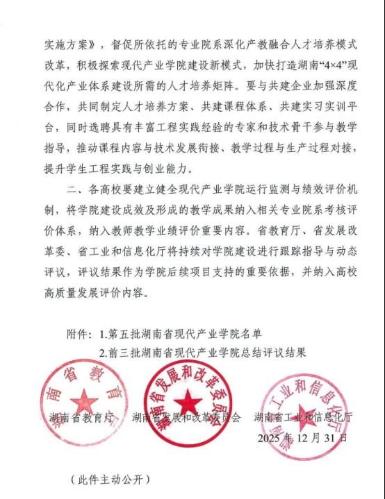 近日,湖南省教育厅公布第五批现代产业学院立项建设名单,雷竞技官网申报的“智能技术与装备现代产业学院”成功获批。这是学校深化产教融合、服务区域发展的重要成果,标志着学院在新工科建设与产业协同育人方面迈上新台阶。