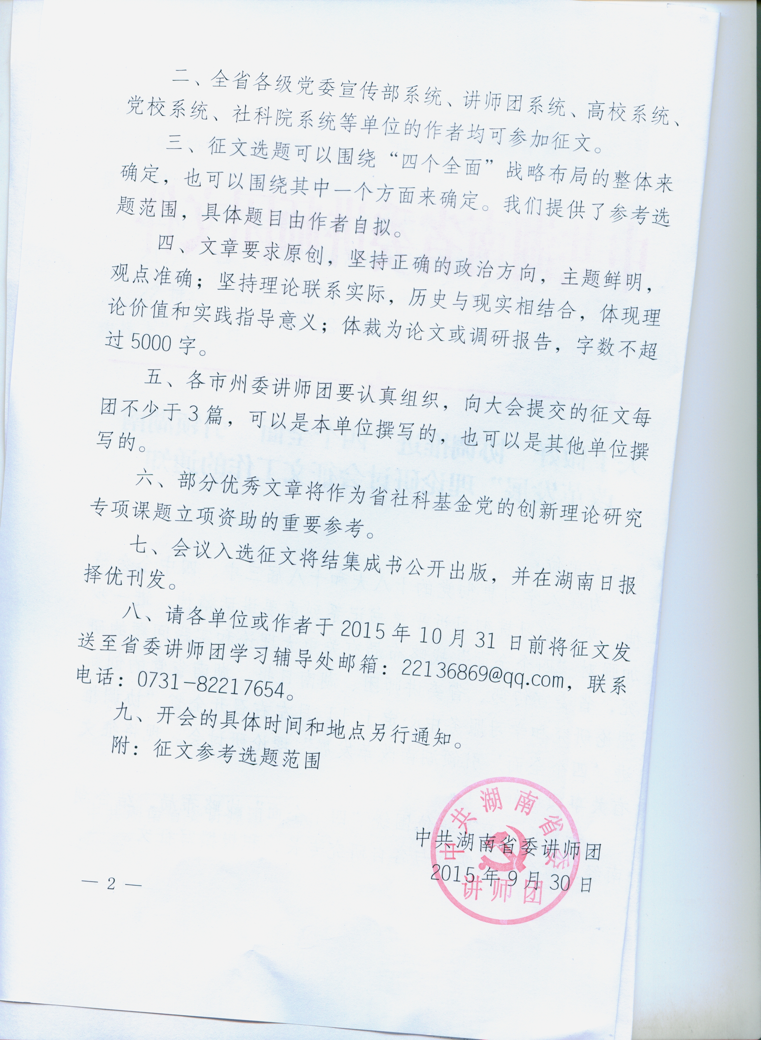 关于做好协调推进“四个全面”引领湖南改革发展理论研讨会征文工作的通知