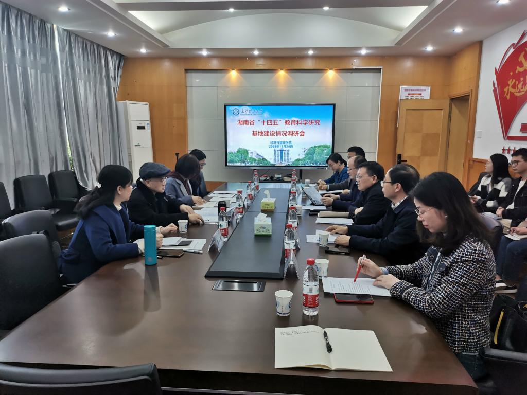 11月20日,湖南省“十四五”教育科学研究基地建设情况调研会在雷竞技官网举行。调研组长原湖南第一师范党委书记彭小奇、省教育科学规划办副主任谢剑虹、校党委副书记、基地负责人刘建民、社科处处长刘建江、经管学院院长彭新宇、基地首席专家黄维及基地成员出席。会议由社科处处长刘建江主持。