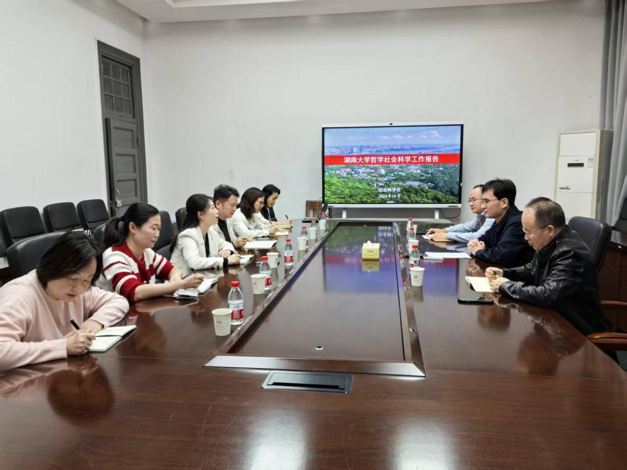 丁三伏简要介绍了湖南大学的办学历史、学科布局及哲学社科领域发展概况,从当前社会科学研究面临的形势和任务、湖南大学社科管理方面的特色经验、取得的成绩以及今后科研发展规划方向和思路等方面进行了详细阐述和经验分享。艾洪山、周建军就平台建设和管理、智库成果认定、国家社科基金项目申报和科研评价体系建设等方面的工作进行了交流分享。随后,双方围绕特色团队及平台建设、智库建设管理、学科交叉融合、国家社科项目及成果奖申报等方面进行深入交流,共同探讨推动高校哲学社会科学高质量发展的有效之策。