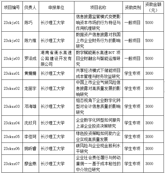 经智能财会研究中心学术委员会讨论决定,并报长沙理工大学人文与社会科学研究处备案,附表中所列项目被确认为智能财会研究中心2023年开放基金资助课题。