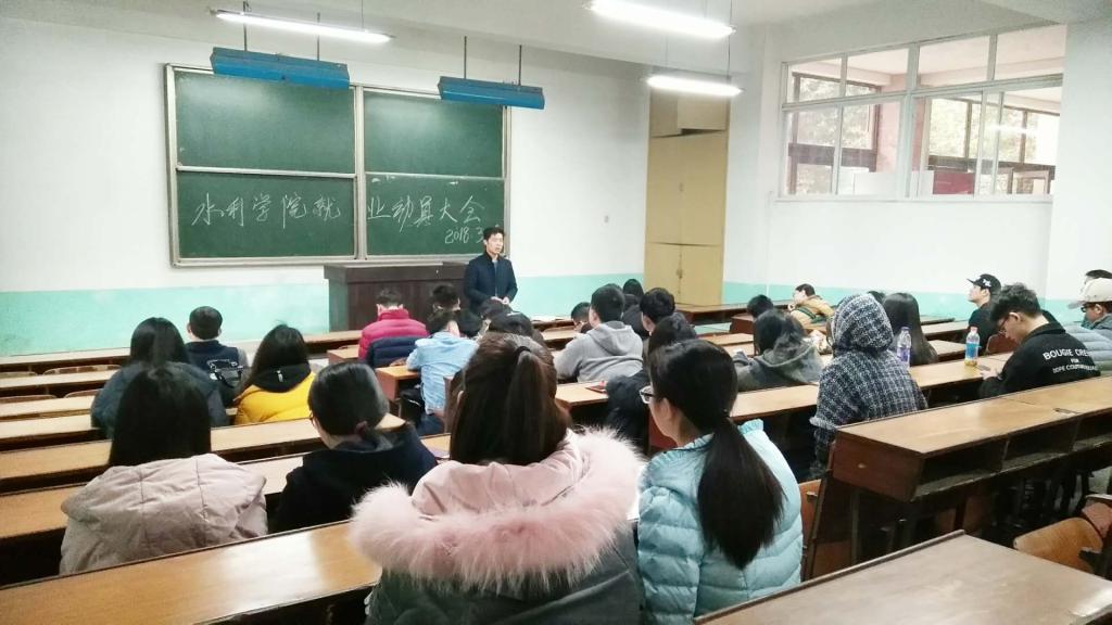 3月20日晚上,水利工程学院在金盆岭校区3教115室举行就业动员大会,会议由学院就业专干贺志琼主持,2018届全体未就业毕业生参加了会议。