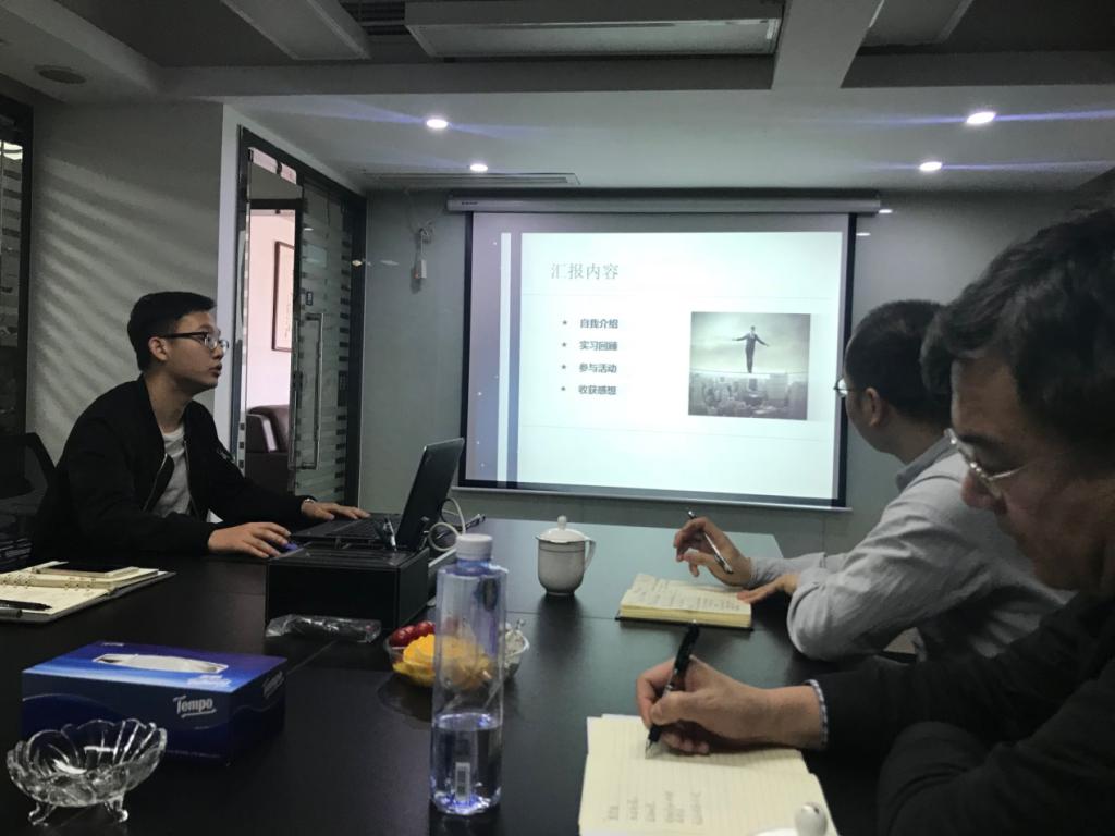 五位实习同学依次对9个月的企业实习情况进行了总结汇报,介绍了在公司的生活工作情况,分享了自己的实习心得体会。同学们不仅夯实了理论知识,学习了许多水利前沿知识,掌握了不少工作技能,增强了实践能力,更重要的是明白了“做事先做人”的道理,为即将步入职场生活奠定了基础。