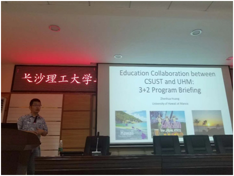 6月14日,水利工程学院在理科楼B311举办了长沙理工大学与美国夏威夷大学3+2合作办学项目宣讲会,美国夏威夷大学马诺阿分校海洋资源与工程系教授黄振华应邀进行了宣讲。会议由水利工程学院院长助理姚宇主持,长沙理工大学副校长蒋昌波、水利工程学院党委副书记王学成、船舶与海洋工程专业班主任陈龙、学工办辅导员杜丘出席了本次宣讲会。