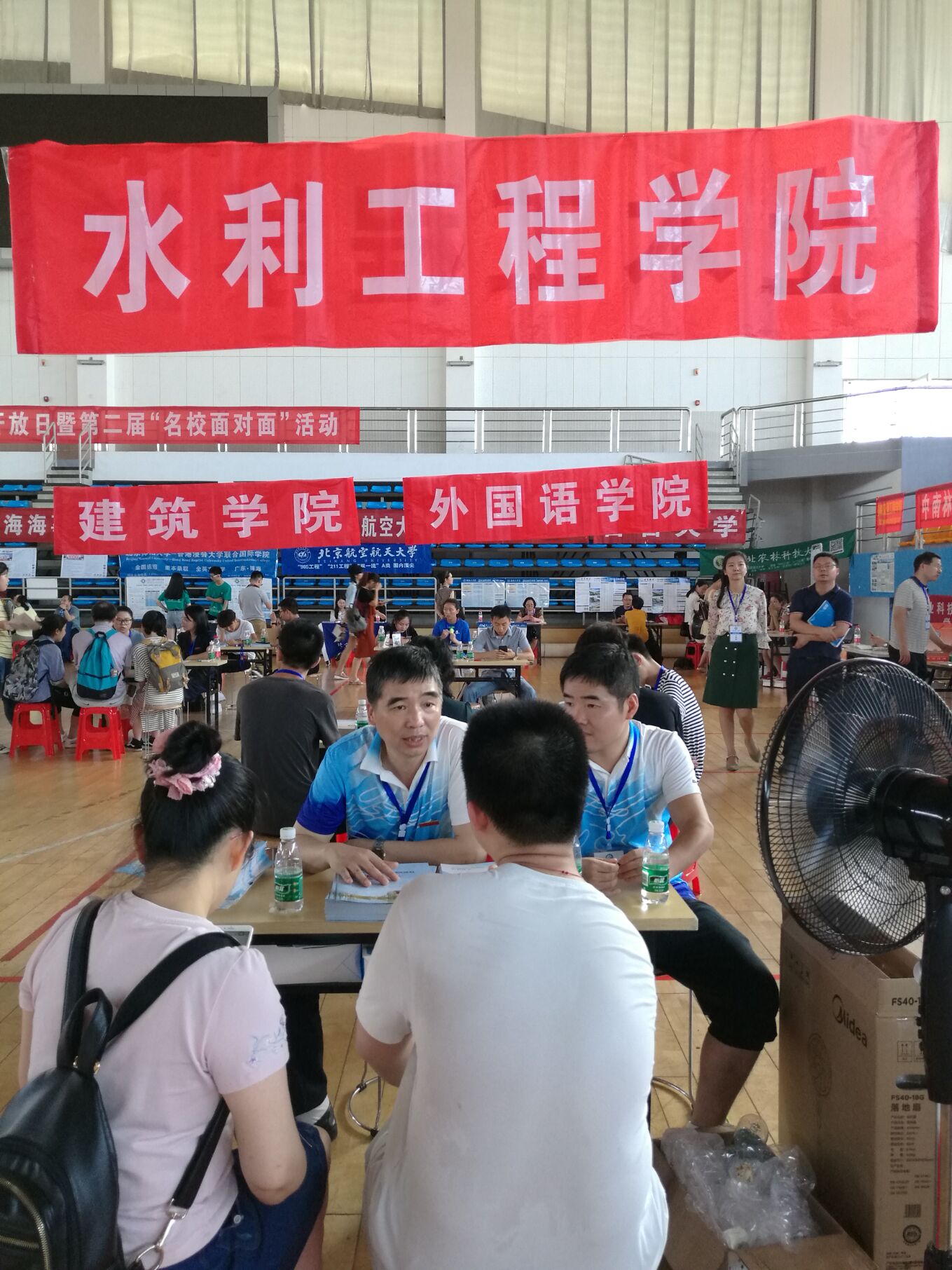 6月25日,2018年校园开放日暨第二届“名校面对面”活动在云塘校区体育馆内举办。我院全体院领导、各系主任、实验中心主任、专业负责人及年轻博士们均参与了本次招生宣传活动。