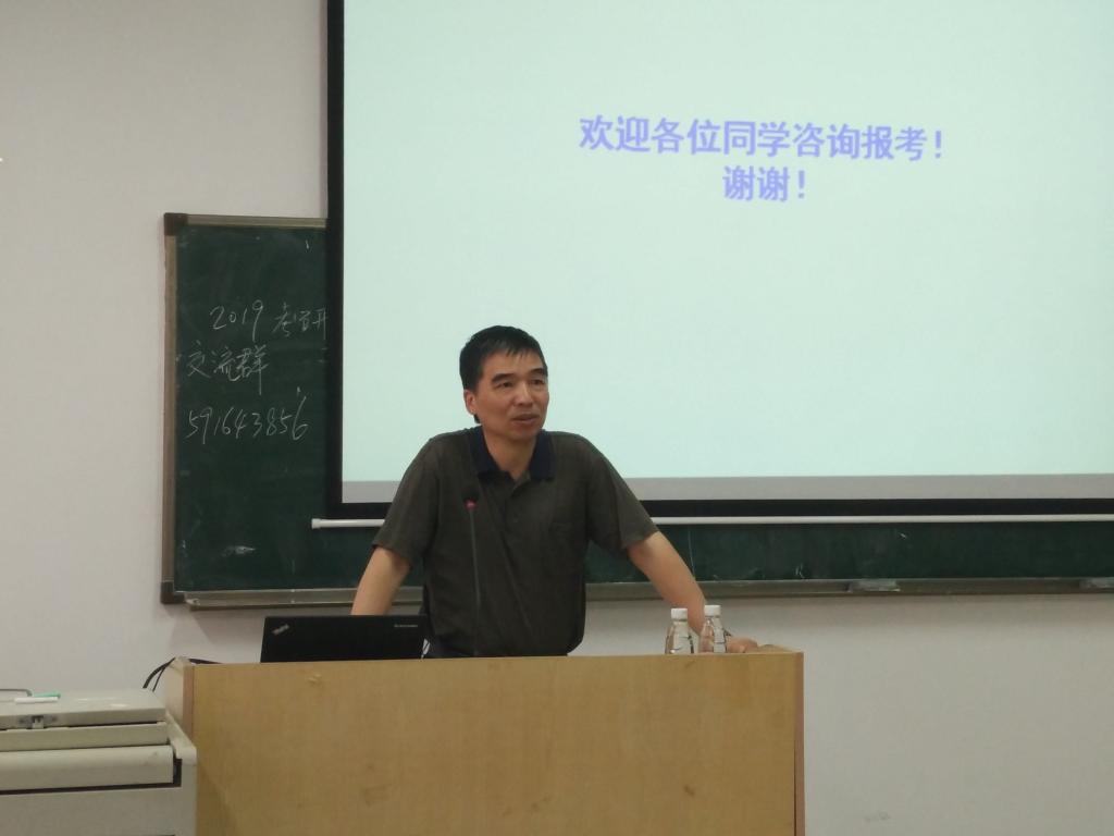 最后,胡旭跃对在座准备考研的学生提出了三点希望:一是希望学生顺利完成现有的本科阶段的学习任务;二是希望学生要经受住考研复习阶段的压力并协调好考研准备与本科学习的时间冲突;三是希望学生明确考研目标,在准确分析自己的成绩、能力的前提下,做好报考志愿的填报。