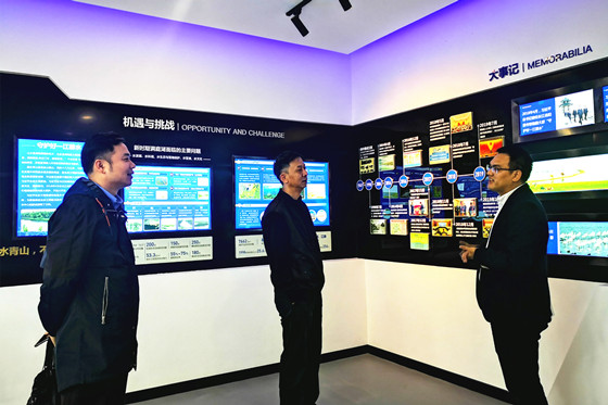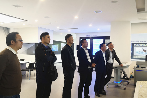 实验室邓斌老师向张秋生一行介绍了洞庭湖基本概况、目前所面临的机遇与挑战、实验室发展目标,以及洞庭湖实验室的建设历程、主要研究方向等;他重点介绍了智慧洞庭综合信息化平台,分享了洞庭湖实验室筹建及综合信息化平台搭建的经验,并规划了下阶段实验室将联合水文、交通、农业、自然资源等部门建立全省水灾水害预警信息化服务平台,服务于我省地方社会经济建设。