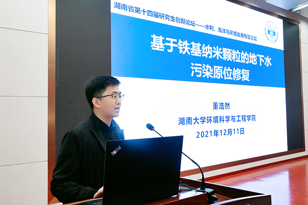 董浩然、李忠武、姚宇先后为论坛作题为《基于铁基纳米颗粒的地下水污染原位修复》、《南方红壤低山丘陵区水土保持措施对水土流失的影响规律及效益》、《珊瑚礁海岸水动力学研究》的特邀报告。来自9所高校的47名研究生围绕水利、海洋与环境发展前沿等主题在论坛分会场进行学术汇报和交流。