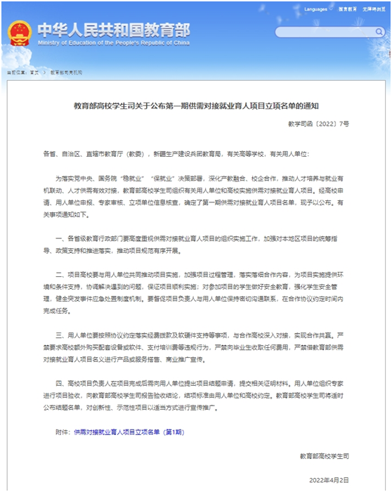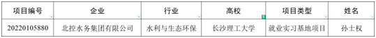 近日,教育部高校学生司下发《教育部高校学生司关于公布第一期供需对接就业育人项目立项名单的通知》(教学司函〔2022〕7号)文件,公布了全国第一期供需对接就业育人项目名单,我院孙士权副教授牵头主持的《北控水务集团—长沙理工大学智慧水务就业实习基地项目》(编号:20220105880)成功获批。