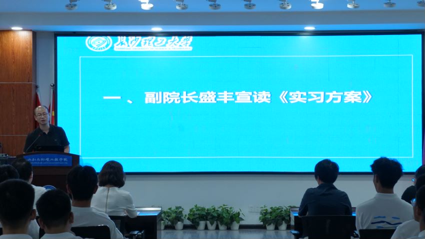 会议伊始,盛丰宣读了《长沙理工大学水利与环境工程学院2020-2021级基层水利特岗人员暑期跟岗实习工作方案》,希望同学们能够深刻认识和理解实习的目的和重要意义,积极投入到跟岗实习中去。