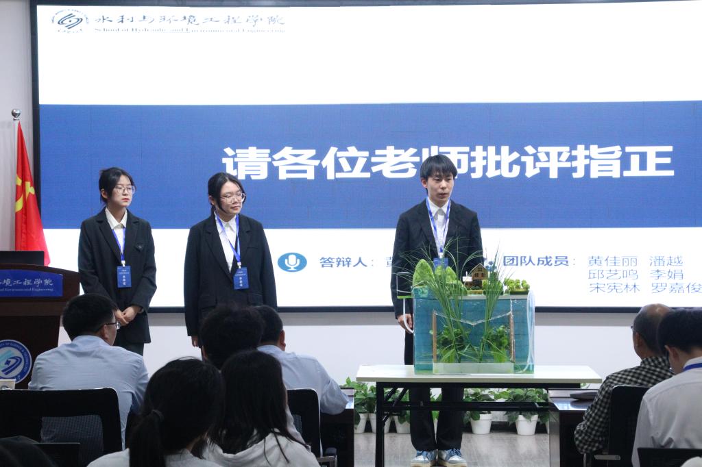“基于生态沟渠常常存在淤泥清理困难,沟渠里的微塑料对人体危害巨大等问题,我们设计了一种微塑料清理、淤泥清理与自身防淤堵功能为一体的装置……” 4月13日晚19:00,第三届“大禹杯”水利模型创新设计大赛决赛答辩于云塘校区工科三号楼B319举办。湖南惟楚科教股份有限公司董事长吴恒先生、工会主席吴根良先生、水利学院副院长孙士权老师、港航系李小超老师、水电系于金弘老师、给排水系刘志华老师出席了决赛现场。