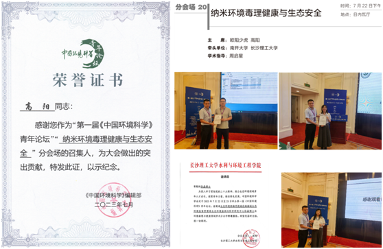 2023年7月22日,由长沙理工大学和南开大学共同牵头组织的第一届《中国环境科学》青年论坛“纳米环境毒理健康与生态安全”分会场,在广东广州顺利召开。分会场由南开大学环境科学与工程学院欧阳少虎老师与长沙理工大学水利与环境工程学院高阳老师负责召集,邀请南开大学环境科学与工程学院周启星教授担任分会场学术指导。
