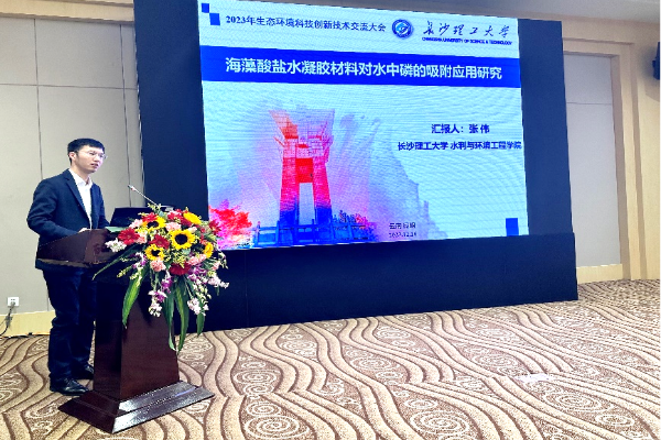 我院教师张伟博士参加了此次会议,并在污水营养物低碳处理及资源化技术分论坛,做了题为“海藻酸盐水凝胶材料对水中磷的吸附应用研究”的报告,受到与会专家的好评;并围绕吸附分离材料、湖泊原位修复材料和底泥资源化以及铁自养生物脱氮技术等方面与与会专家进行了深入交流探讨。