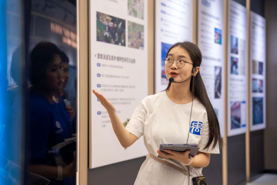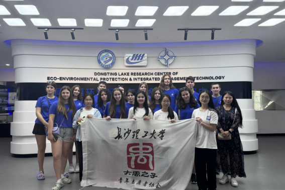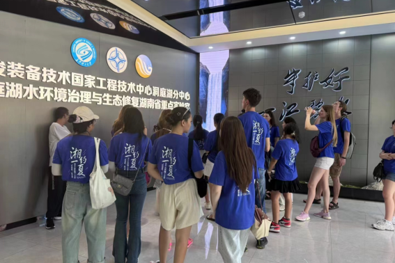 活动现场,讲解员文晓凤老师带领国际青少年参观了实验室成果展示区、智慧水利研究中心与洞庭书舫。“洞庭湖是我国第二大淡水湖,素有长江之肾的美誉……”详细的讲述让国际青年了解了洞庭湖的生态底色和生物多样性。通过一系列精心准备的数据和实例,文晓凤介绍了湖南省近年来在改善洞庭湖水环境质量和恢复水生态方面发生的巨大变化。水质优良率显著提升,湿地修复面积不断扩大,这些成绩的背后是长沙理工大学破解湖南“一江一湖四水”工程关键技术难题的努力;学校的科研团队从大江大河到南海岛礁、从平陆运河到南水北调、从中南半岛到非洲大陆,为数百个港口、水利水电、航运枢纽工程等提供了技术支持,体现了我国在工程技术领域的雄厚实力和利用水资源的智慧,文晓凤表示。