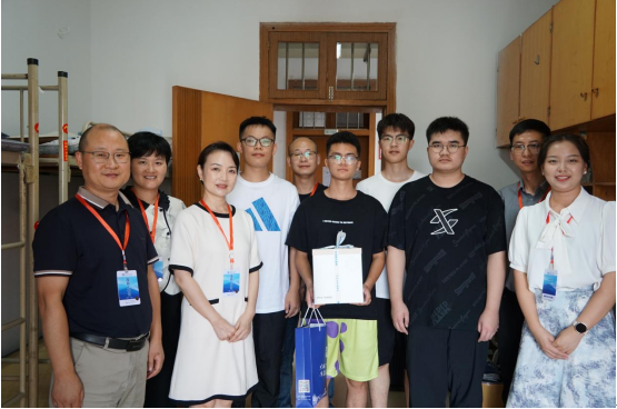 为帮助新生更快地融入水利大家庭,在迎新期间,院党委书记喻玲娜、院长陈杰、副书记银波,副院长孙士权、盛丰、邓斌在新生辅导员李永睿、王正博的带领下深入走访新生宿舍。在走访过程中,学院领导与新生亲切交谈,向新生们开启人生新旅程表示祝贺,勉励他们把握学习良机、充分利用学校学院的优质资源,努力实现全面发展,在新的人生阶段绽放出最绚烂的光彩。同时,学院领导还为报到当天过生日的新生们送上生日蛋糕与祝福,传递了关怀与温暖。