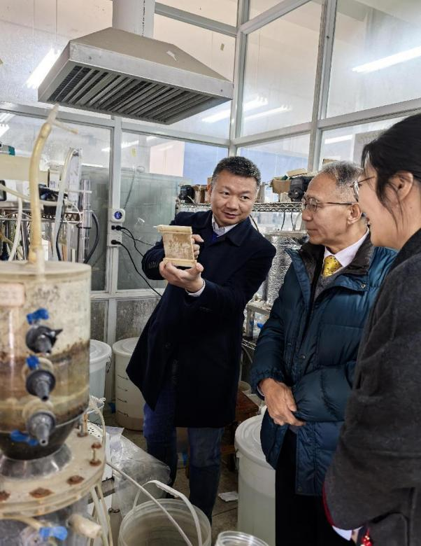 报告中,鲁云以其深厚的学术造诣和宽广的科学视角,为师生详细阐述了新能源材料研发在碳达峰碳中和的应用与展望,深入介绍了其新研发的新型二氧化钛(TiO2)光触媒薄膜小球,具有极高的除臭、分解去除有机环境污染物的性能。报告内容新颖丰富、讲解详细生动,引起了参会师生的热烈讨论,使师生们开阔了视野,拓宽了科研思路,为将来国际合作交流奠定了基础。会后,鲁云参观了生物反应装置实验模型、水质分析综合实验室、陶瓷膜材料等实验室,并对进一步加强合作交流的可行路径进行了深入探讨。