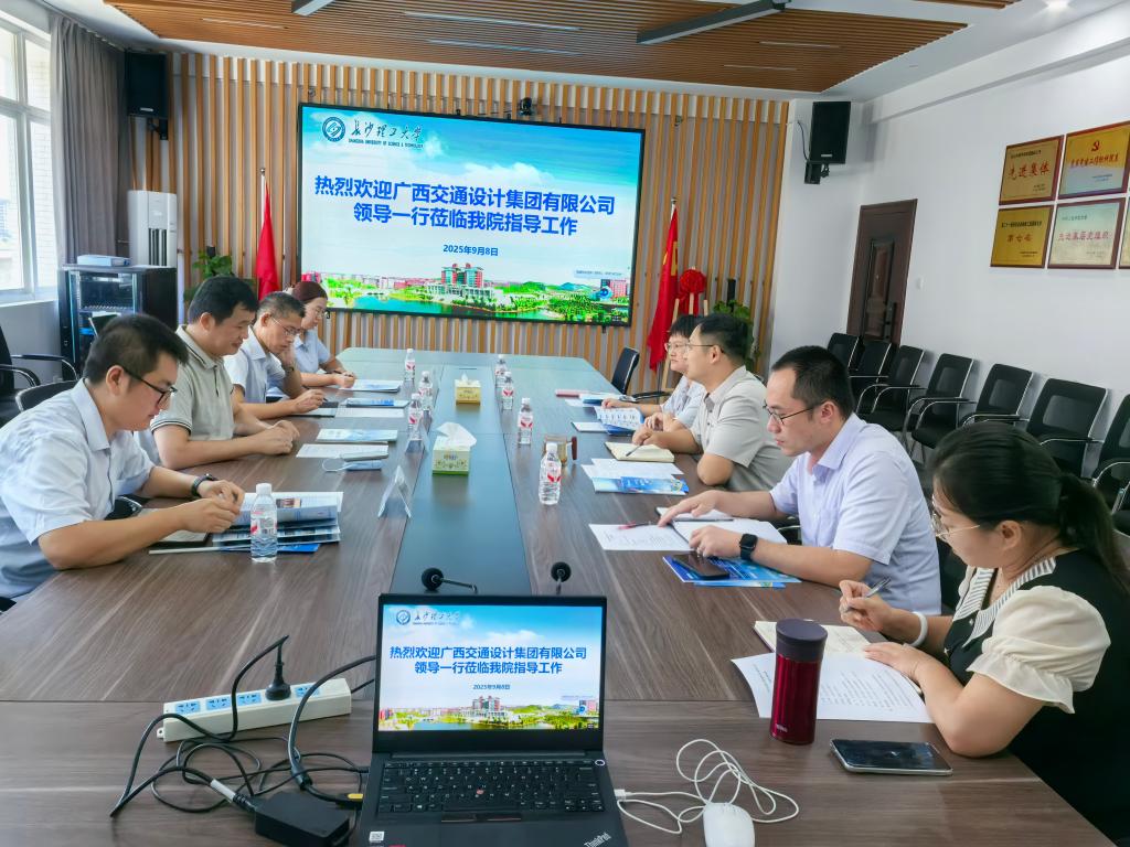 9月8日,广西交通设计集团副总经理卢聪达率队到访水利学院,围绕校企合作、科研创新、人才培养及校园招聘等议题开展调研交流。学院院长陈杰、党委副书记银波、副院长伍志元、水利水电系主任鲍海燕、就业专干綦丽出席会议。