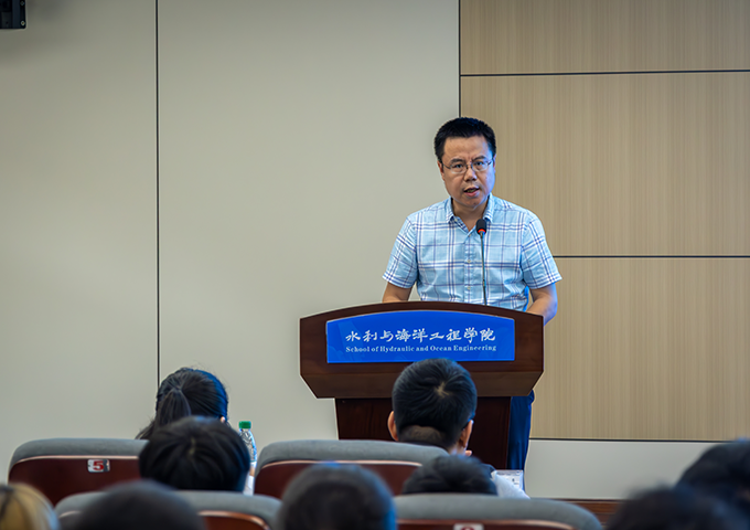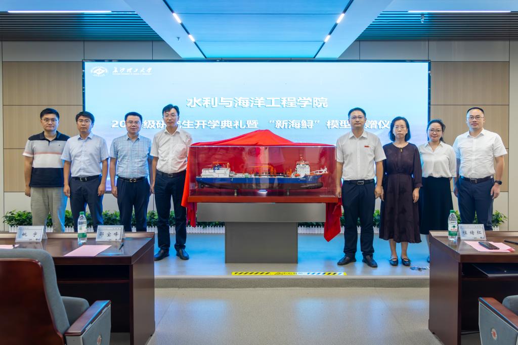 9月15日下午,水利与海洋工程学院2025级研究生开学典礼暨“新海鲟”轮模型捐赠仪式在云塘校区新能源大楼举行。中交上海航道局有限公司人力资源部总经理程绪红、中交上航局中交水利公司党委副书记、总经理邵宝峰、人力资源部总经理助理钱俊、中交水利水电建设有限公司人力资源部经理刘江丽、中港疏浚有限公司人力资源部经理王荣丽、校水利学院院长陈杰,博士生导师代表姚宇,副院长伍志元等领导嘉宾出席。活动由学院研究生辅导员杜丘主持。