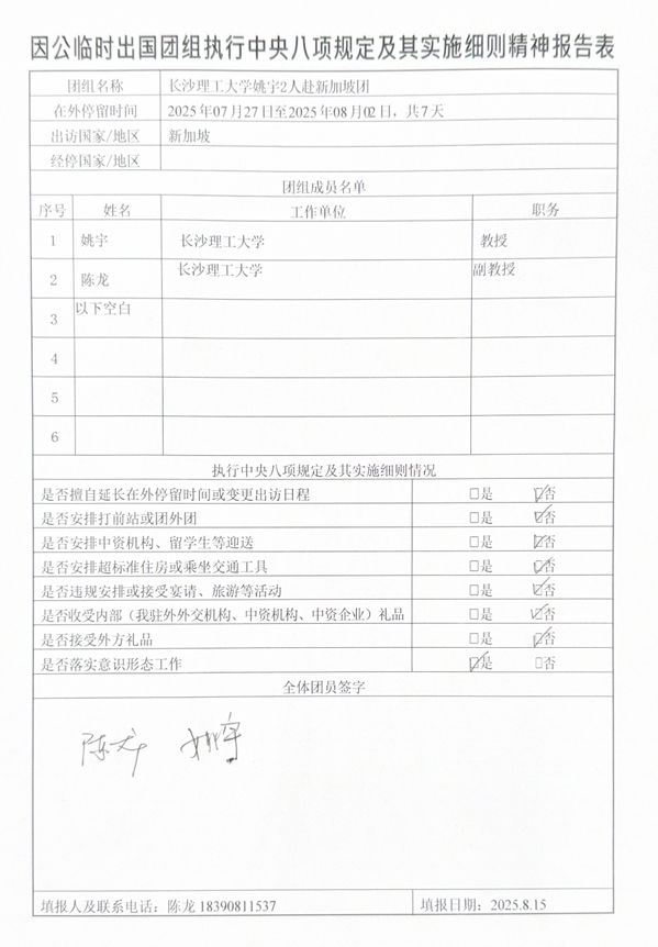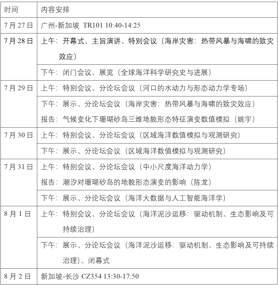 本次出访为期7天,由长沙理工大学水利与海洋工程学院船舶与海洋工程专业负责人姚宇教授,陈龙副教授组成代表团,赴新加坡参与亚太大洋洲地球科学学术大会,按原计划完成出访任务回国,本次出访过程中完成了预定的工作任务。行程涵盖开幕式、主旨演讲、专题分论坛、闭门研讨及学术展览等多元活动,聚焦海岸灾害、海洋数值模拟、珊瑚岛礁演变、人工智能海洋学等前沿议题,深化了国际学术合作与科研交流。