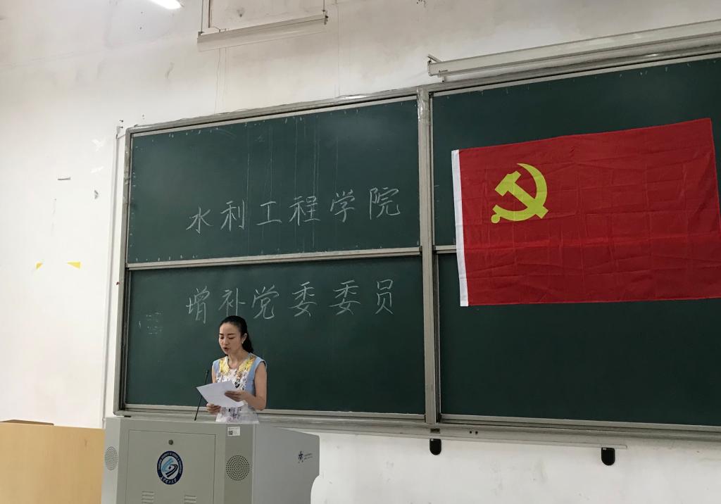 全体教职工大会后,学院党员教师和学院本科生、研究生党员共同召开了全院党员大会,会议由喻玲娜书记主持,会议主要内容为学院增补党委委员。学院在上个学期已经向学校党员申请召开了此次党员大会,并得到了批复,通过差额选举增补一位党委委员是一件非常严肃的事情,喻玲娜书记强调每一位党员同志都要认真对待。通过全体党员无记名投票,孙士权同志增补为水利学院党员委员。喻玲娜书记表示,希望孙士权同志不负众望,在今后工作中继续努力,为学院发展贡献自己的力量。