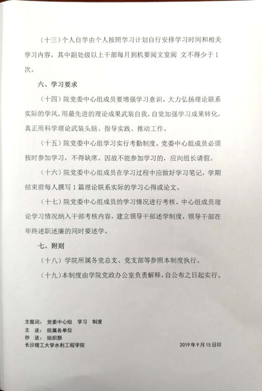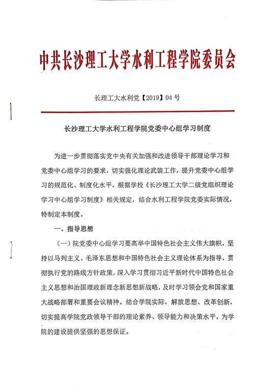 长沙理工大学水利工程学院党委中心组学习制度(长理工大水利党【2019】04号)