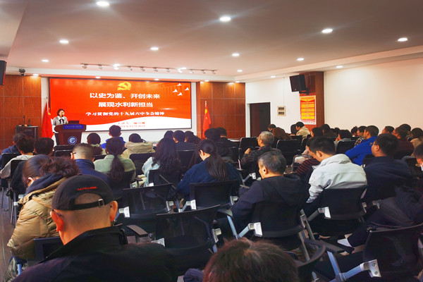 11月30日下午,水利与环境工程学院全体教职工在工三B319学习党的十九届六中全会精神,学院党委书记喻玲娜以《以史为鉴、开创未来,展现水利新担当》向大家作宣讲报告。