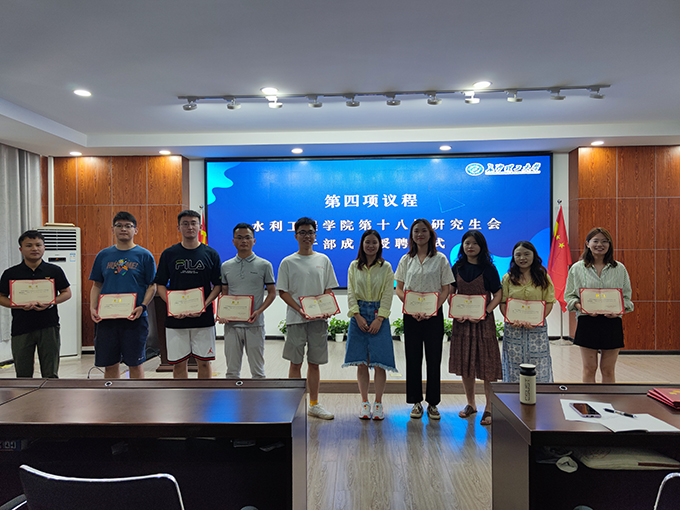7月14日上午9:30,水利工程学院在云塘校区工三B319举行第十五届研究生会换届大会,研究生辅导员綦丽以及部分学生干部参加本次会议,会议由杨恩喆主持。