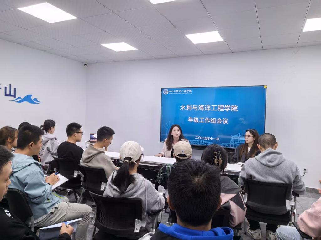 为进一步夯实班团组织建设基础,深化优良学风建设,11月2日晚,水利学院在“大禹之子”一站式学生社区召开2025级年级工作组会议,年级辅导员王正博、王祎及全体年级组成员参会。会议重点明确了部门职责分工,并就后续工作安排进行了详细部署。