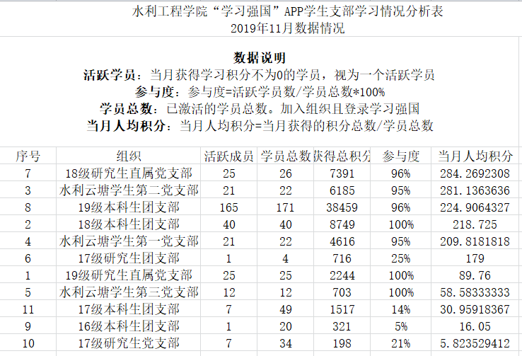通过比对11月1日及12月2日两个日期每个支部党员在“学习强国”平台上的学习分数,得出了11月份我院党员的学习情况,现将评比结果通报如下。