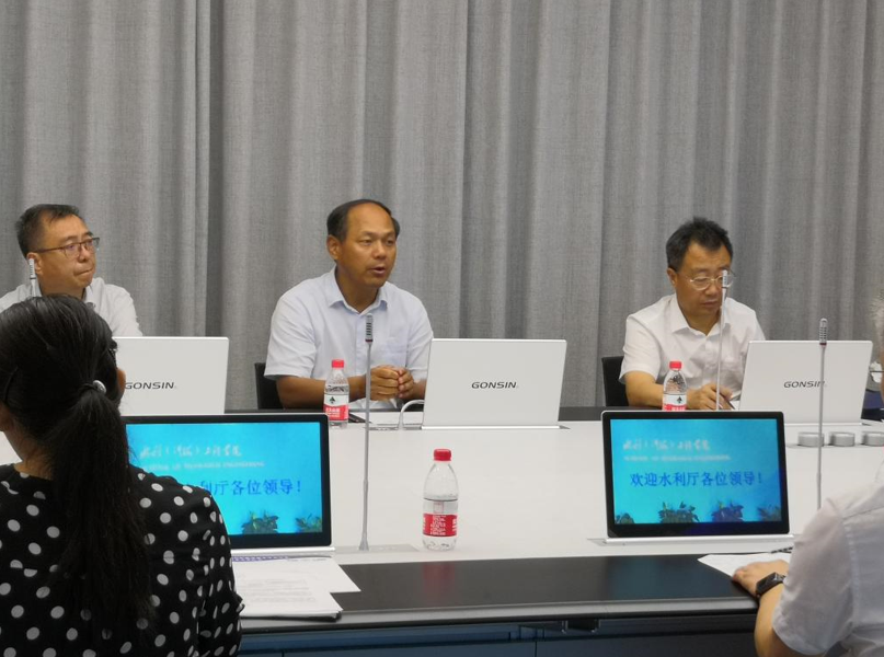 胡旭跃院长介绍了我院初步拟定的“基层水利特岗人员定向培养方案”,副厅长钟再群就我院拟定的培养方案提出了具体建议。最后,双方就基层水利特岗人员定向培养方案进行了深入探讨交流,建议以实际需求为导向,进一步完善培养方案、优化课程体系。