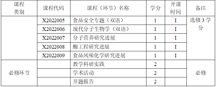注:1.课程中应开设一门学科前沿课。