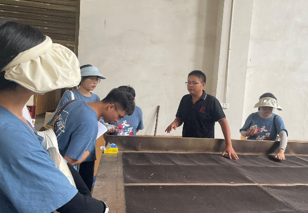 “择一事,专一生”正是安化茶人的真实写照,湖南省高马山农业有限公司黄艳松董事长带领实践团参观黑茶工艺生产线,在对企业发展历程的介绍中,能够深刻感受到一代又一代的安化茶人以传承千年茶文化为己任,主动承担起了建设美丽乡村的使命。传统乡村产业的振兴既需要有情怀、有能力的企业家的助力,又亟需理论与科技的支撑。双方通过深入交流达成校地合作,师生们与企业家进行深入交流,从企业所需的提高茶叶品质、优化加工工艺、寻找风味影响因素等角度提供了专业指导,并对茶园鲜叶及生产加工后的茶叶样品进行了采集,后续将通过科学实验分析,继续为企业茶叶种植建议良策。