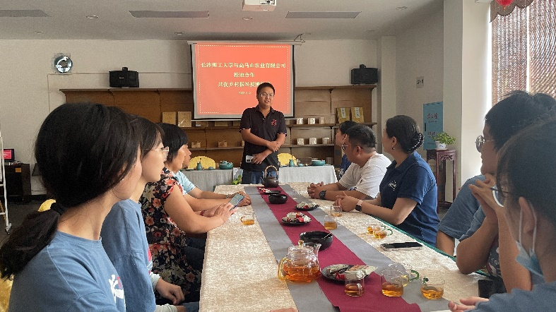 “高校提供的科技支撑可帮助企业保证产品质量并推陈出新,将助力安化黑茶走向中国乃至世界市场,实现茶农增产增收,巩固乡村振兴的成果”,正如文李教授所言,实践团又来到湖南省阿香茶果食品有限公司与阿香美黑茶品牌负责人进行讨论,就茶叶的种植条件、生产标准、品种优育、产品销售等方面进行指导,积极探索以茶赋能推动脱贫攻坚同乡村振兴有效衔接的可行路径。