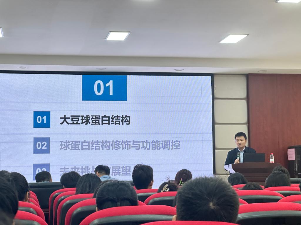10月25日下午,食品学院于工三A320举办长沙理工大学第十九届研究生博力学术论坛分论坛。国家杰出青年科学家基金和优秀青年科学家基金获得者,黑龙江省绿色食品科学研究院副院长,博士生导师隋晓楠教授应邀做了主题为“大豆蛋白质结构与功能研究”的学术报告。食品学院全体教职工及研究生听取了报告。