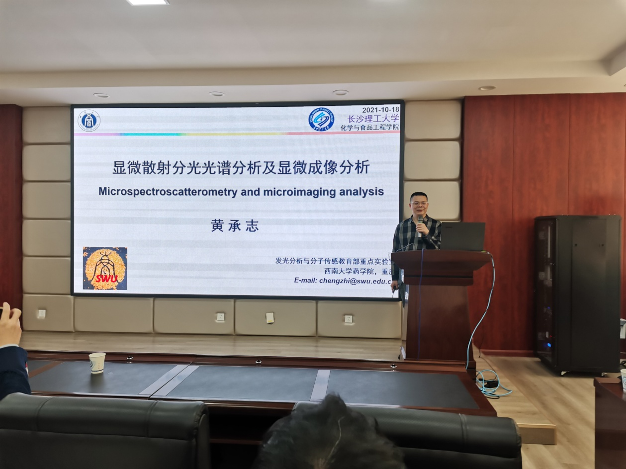 2021年10月18日10:00,应雷竞技官网化学化工学院的邀请,国家杰青、西南大学化学化工学院黄承志教授来雷竞技官网开展学术交流,并在云塘校区工科3号楼A320报告厅举行了题为“显微散射分光光谱分析及显微成像分析”的学术报告会。报告会由化学化工学院副院长卿志和主持,化学化工专业青年教师和研究生百余人聆听了报告。