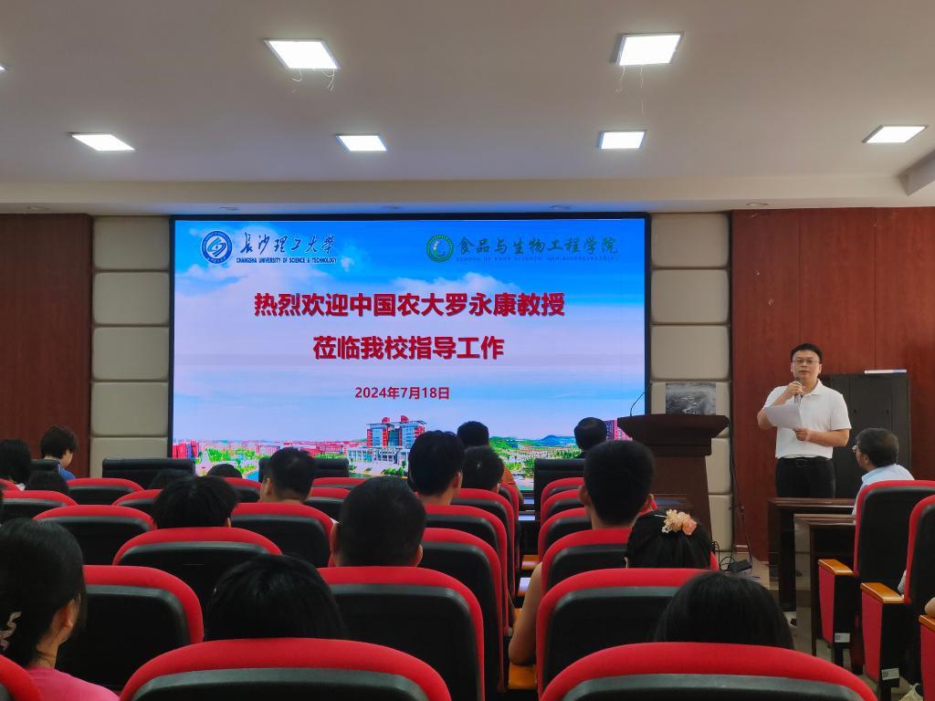 2024年7月18日上午,中国农业大学博士生导师罗永康教授应长沙理工大学食品与生物工程学院邀请,在工科三号楼A320会议室做题为“淡水鱼贮运保鲜及蛋白质资源开发利用”的学术报告。会议由我院院长王建辉主持,学院百余名师生参加了本次报告会,现场座无虚席,收获了阵阵热烈掌声。